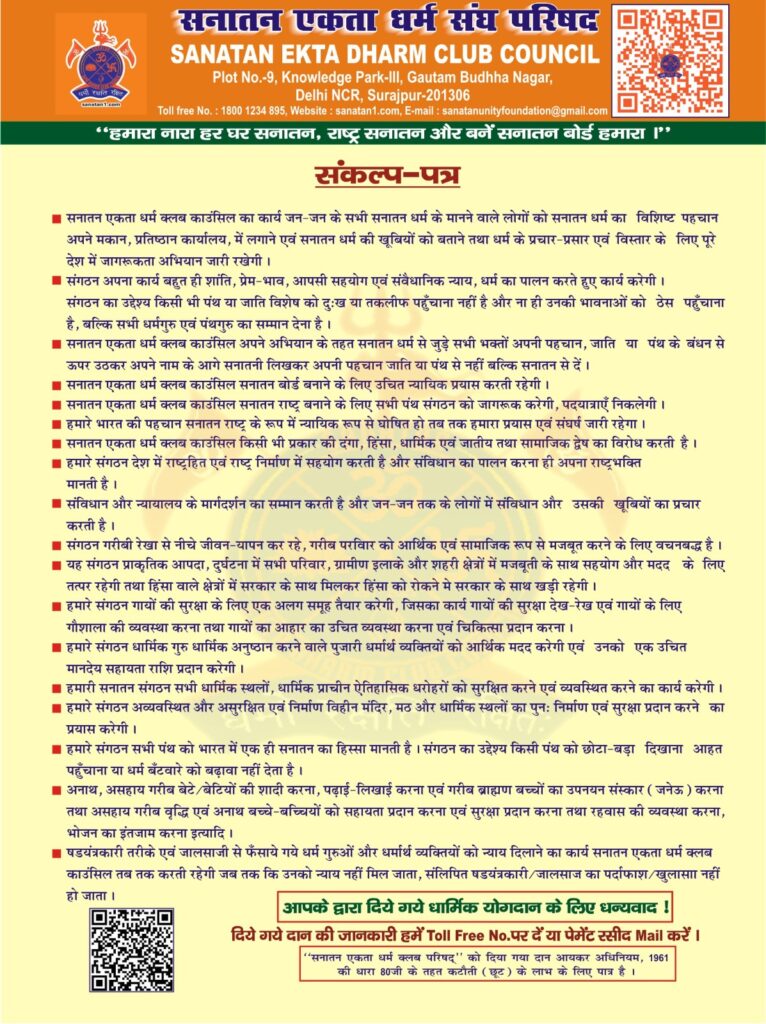 Goals Of Sanatan Ekta Dharm Club Council